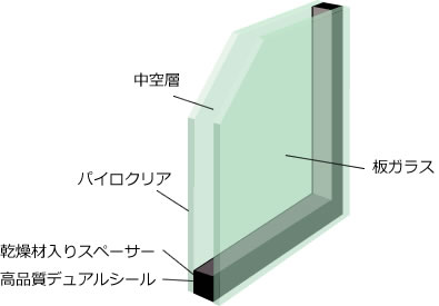 窓には、複層ガラスを採用しました。2枚のガラスと中空層で構成されています。1枚ガラスに比べ、断熱性能が高く、省エネにも効果的で、CO2排出削減に貢献します。